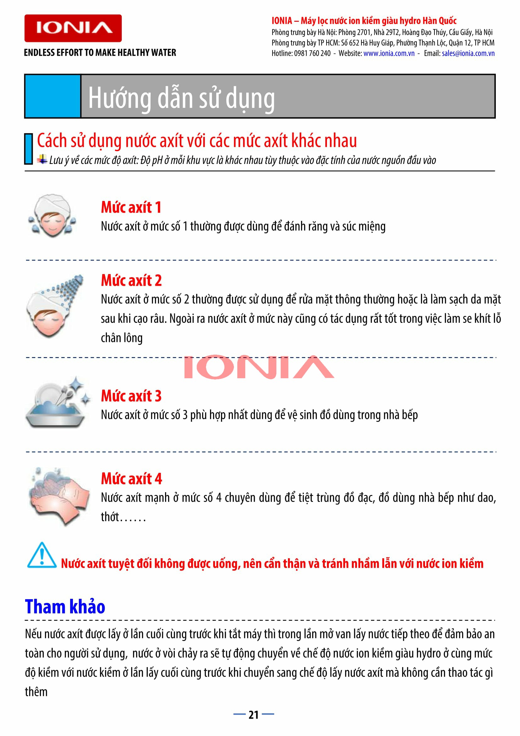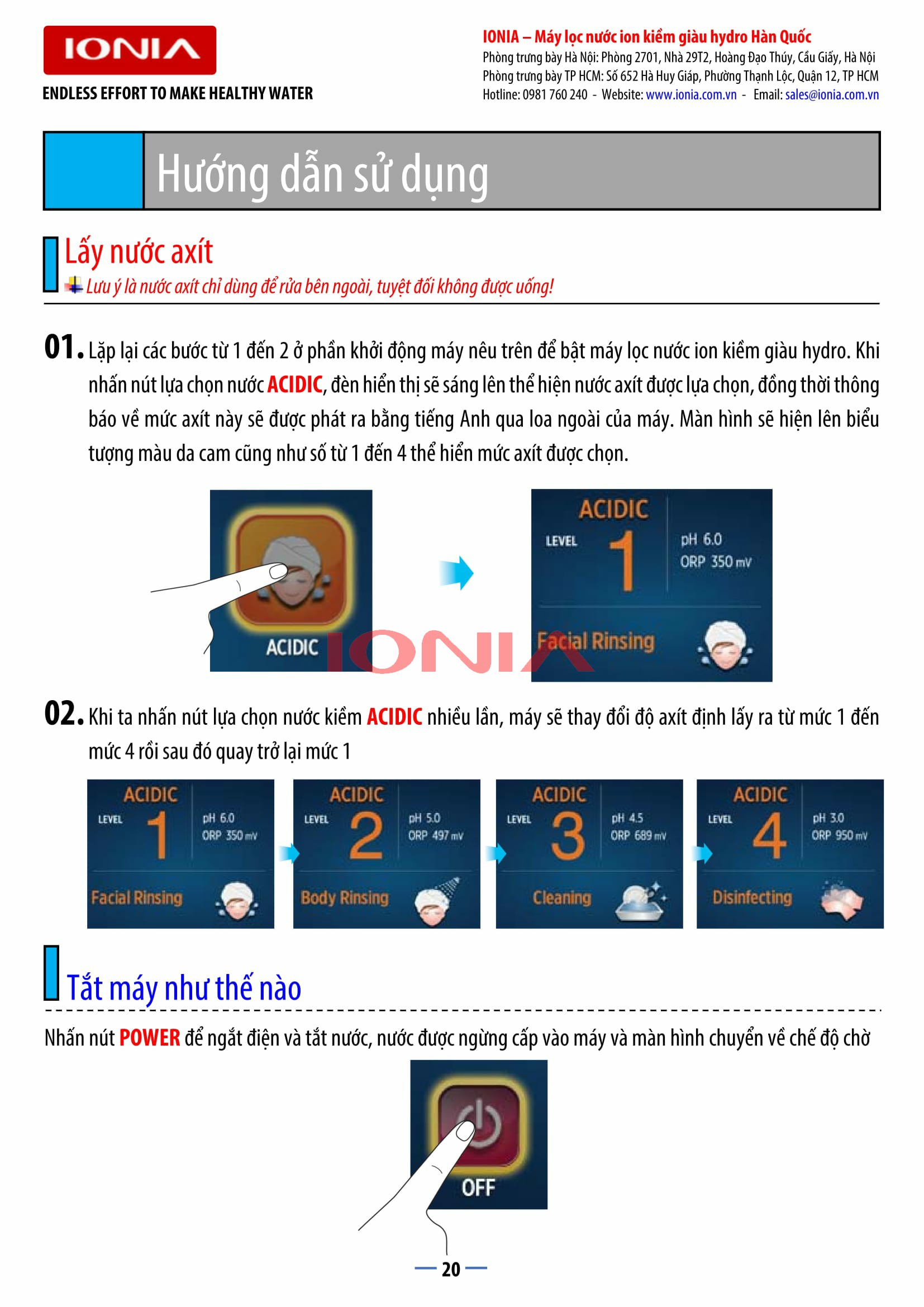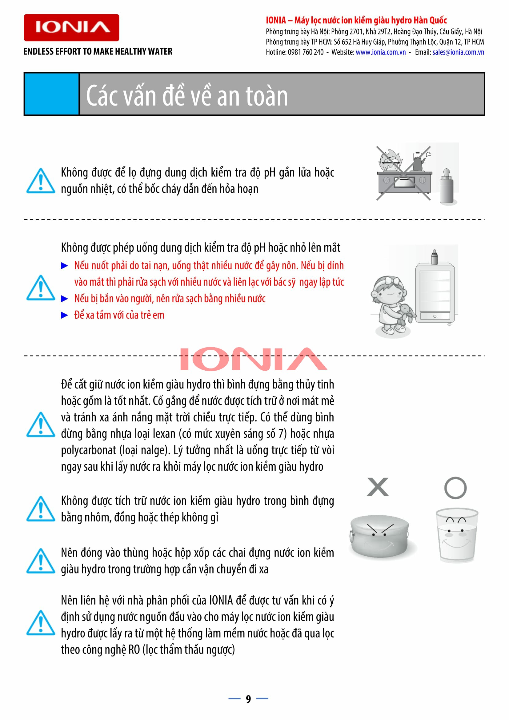 | Cho ra 9 loại nước có mức PH khác nhau | Từ pH 3.5 đến pH 11.5 |