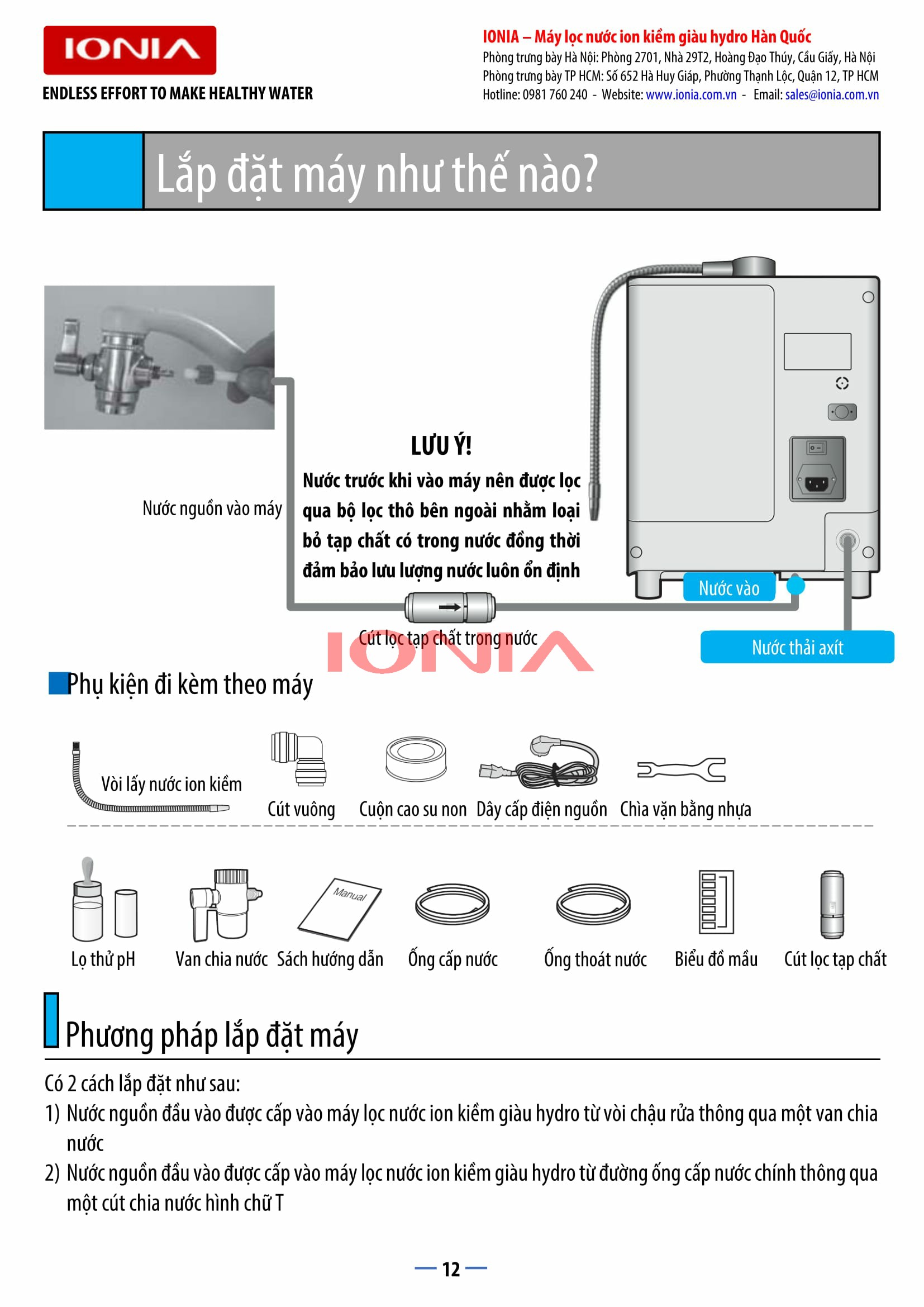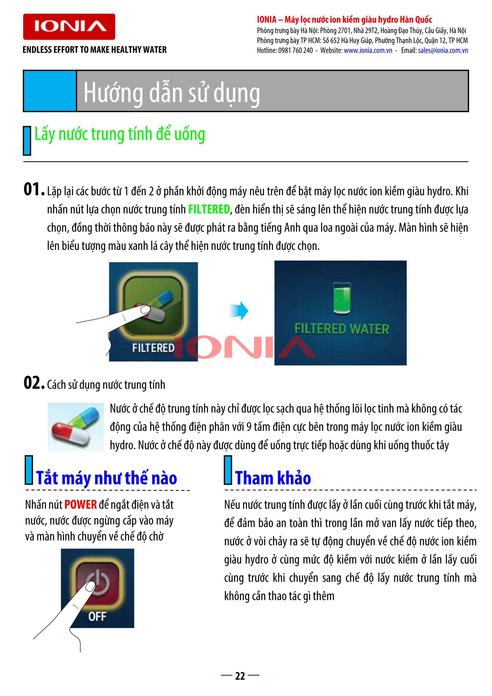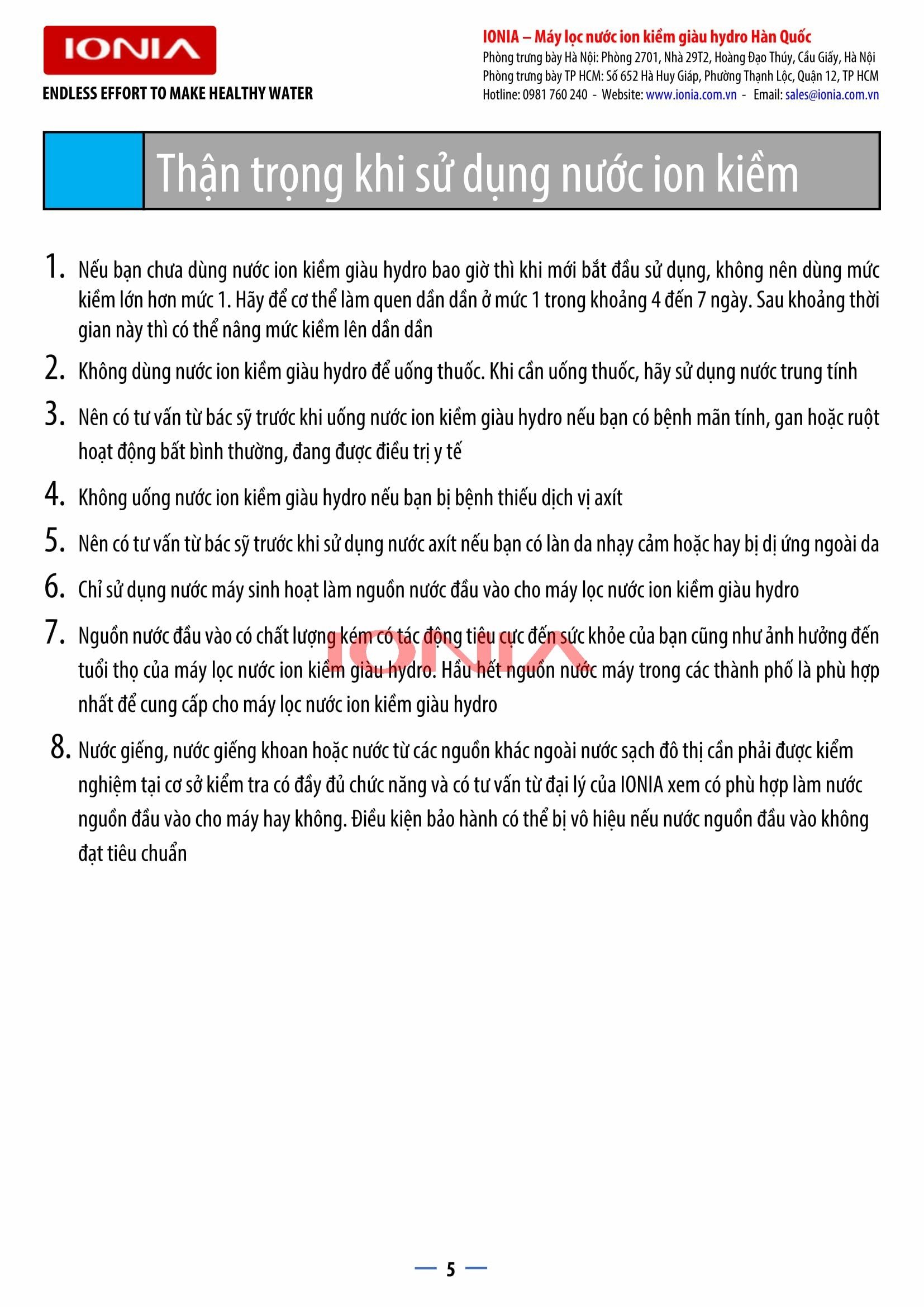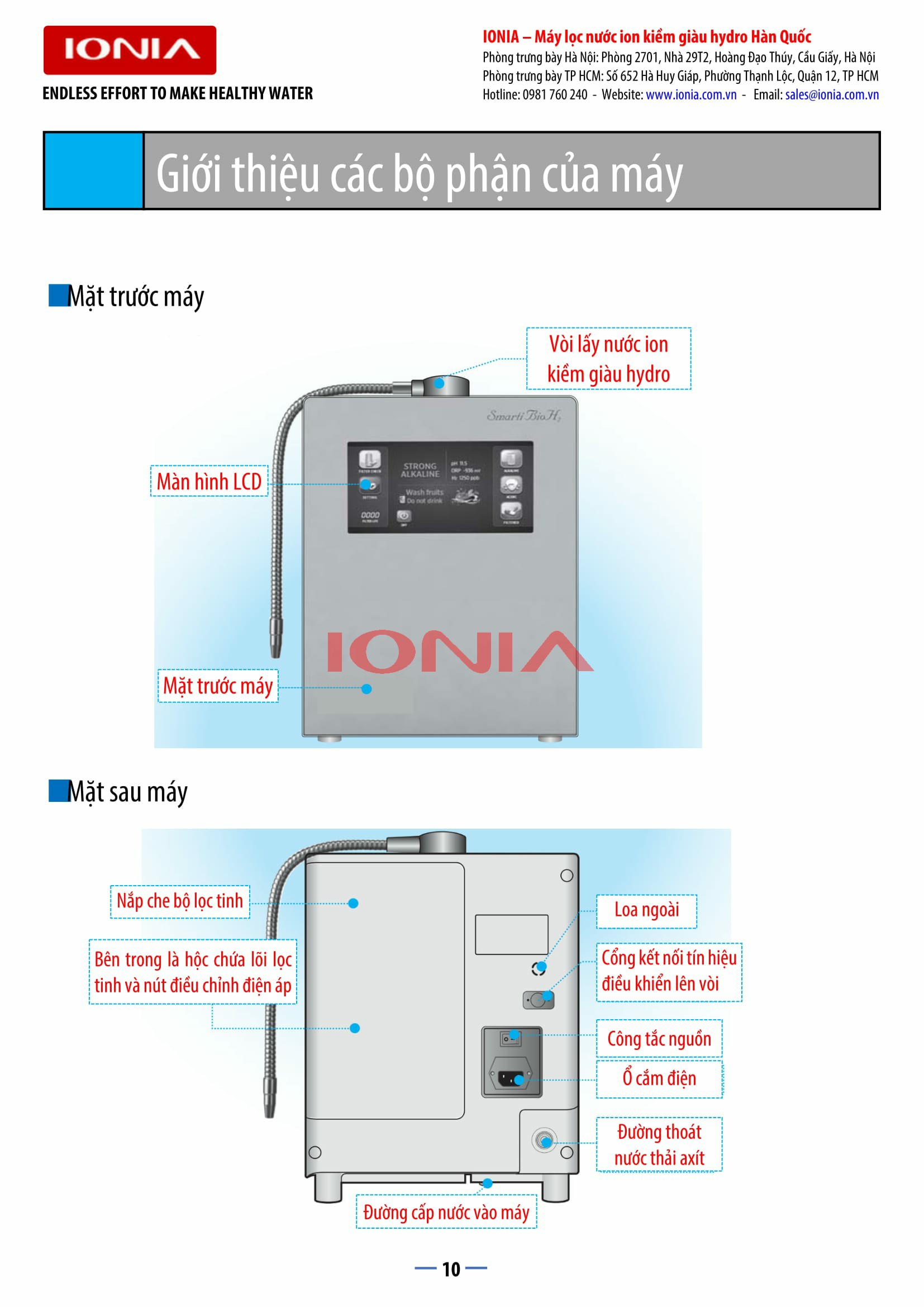 | Cho ra 9 loại nước có mức PH khác nhau | Từ pH 3.5 đến pH 11.5 |