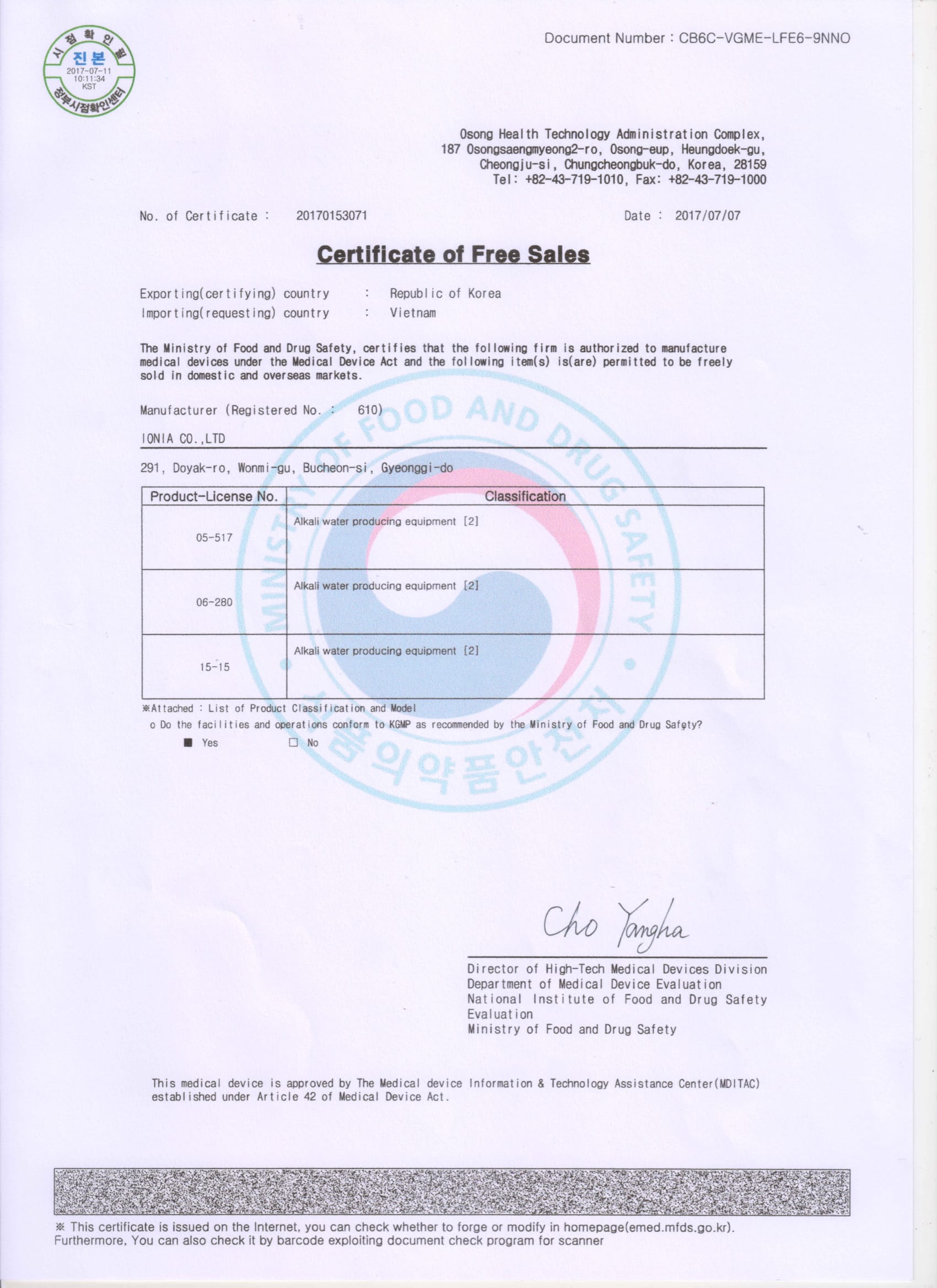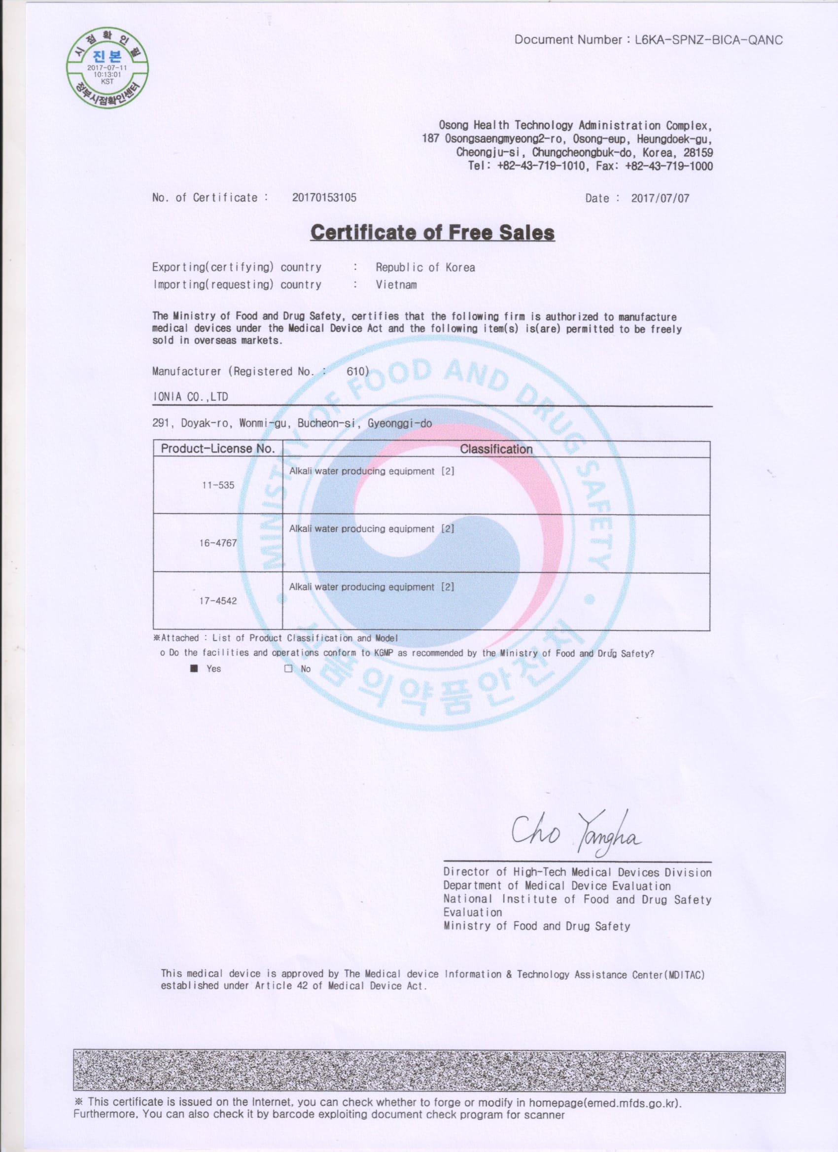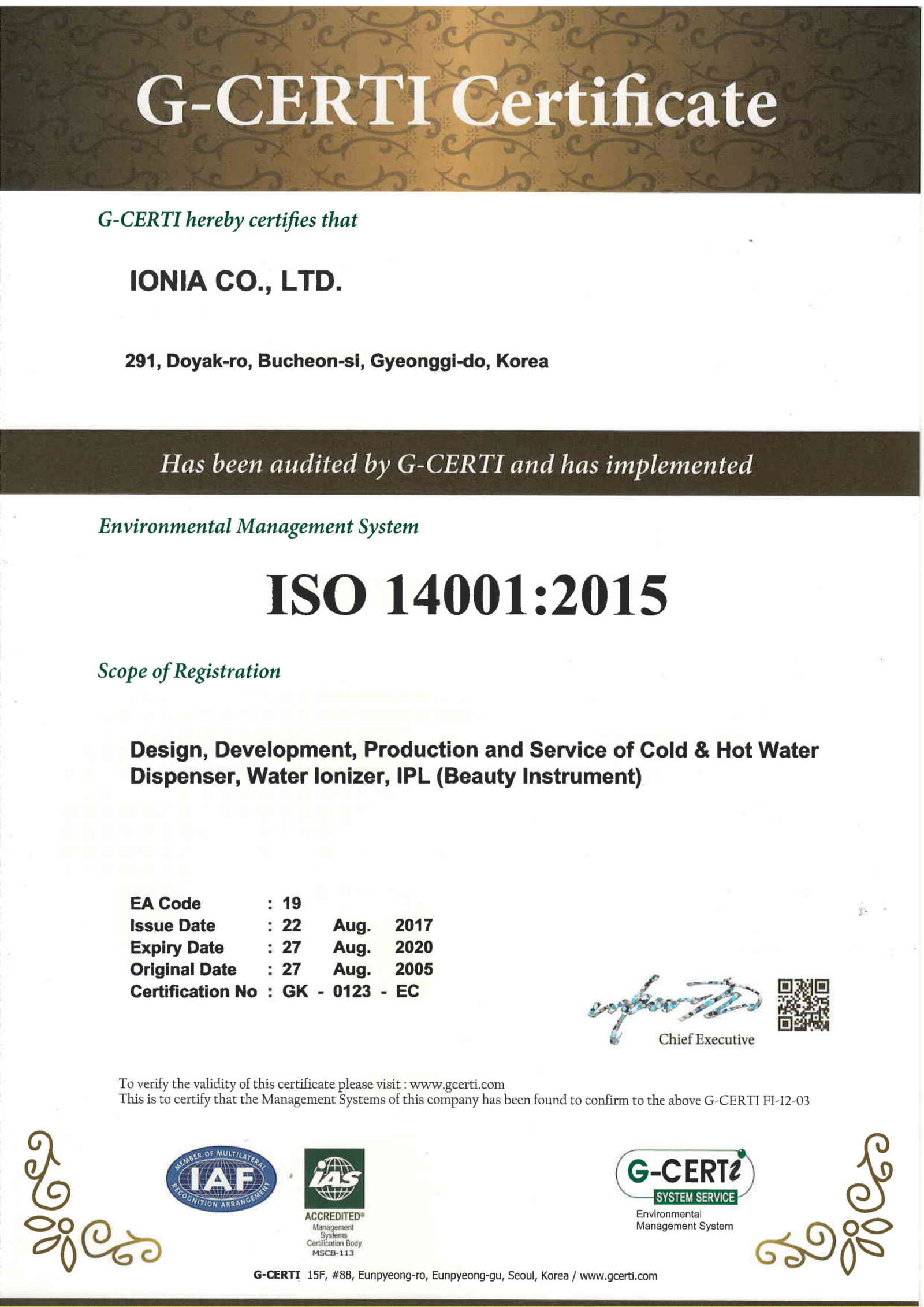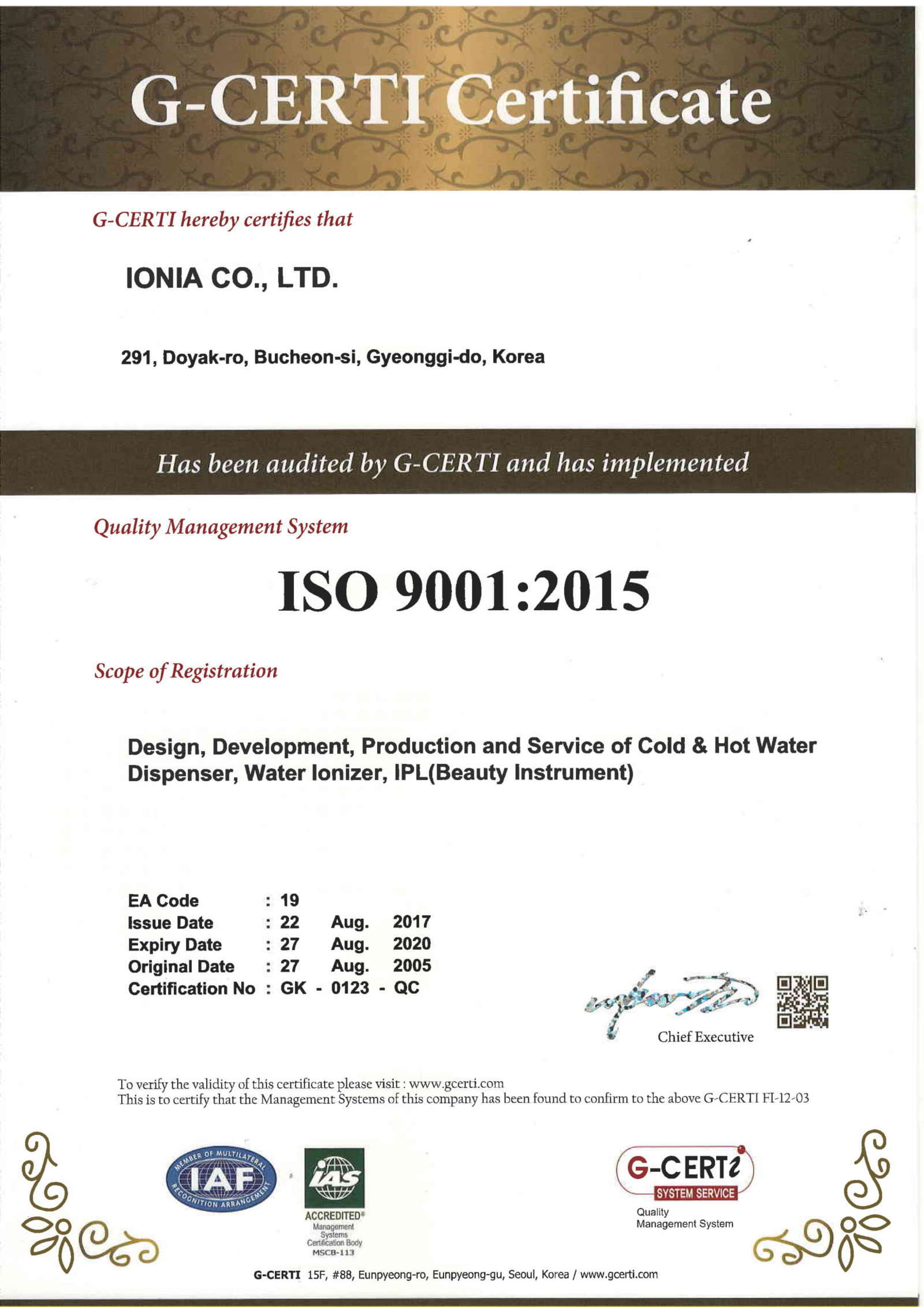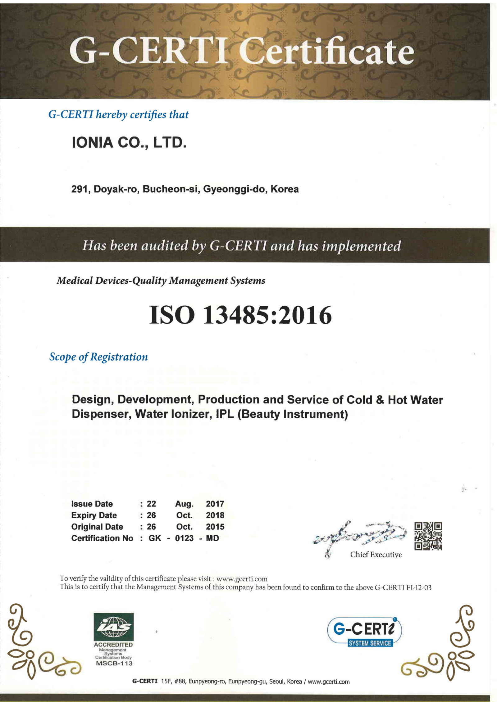 2. Chứng nhận máy lọc nước ion kiềm IONIA là thiết bị y tế – ISO 13485