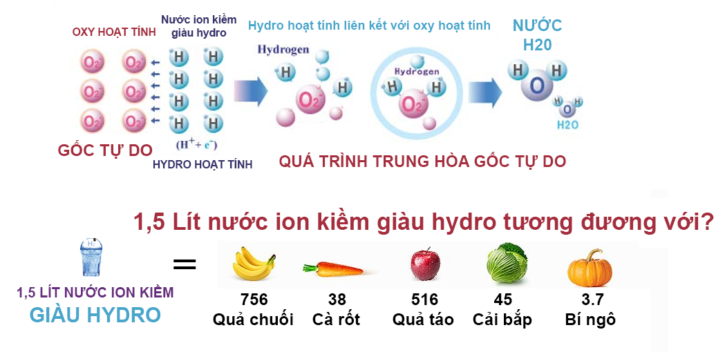 Máy lọc nước ION KIỀM giàu HYDRO tạo ra nguồn nước giàu HYDRO lên tới 1750 ppb giúp trung hòa các gốc tự do hiệu quả, bảo vệ cơ thể trước mọi nguy cơ bệnh tật.