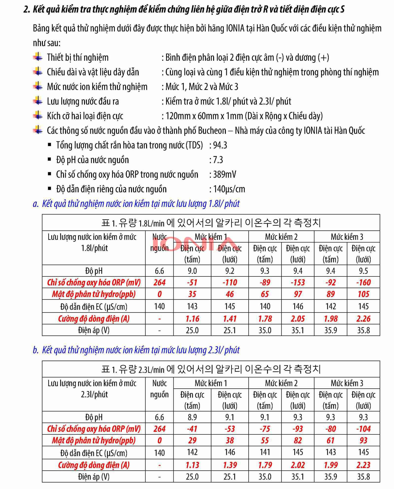 | Chỉ số chống oxy hóa (ORP) | Tối đa tới – 1000 mV |
